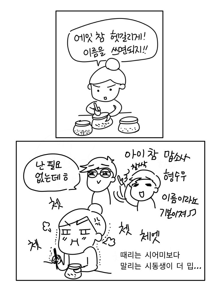 '이름을 통 위에 써놓으라고!!! 그럼 안 헷갈리잖아!!!!!!!!!!!!아아아아악'