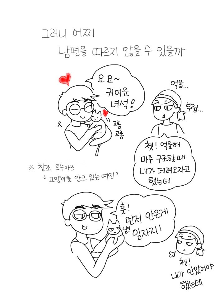 어제 밤인가, 신년의 흥분이 가시고 다시금 현실에 고민해서인지 자주 잠을 못이룬다. 악몽을 꾸고 깨서는 또인가...한숨을 쉬었다. 서울과 달리 바깥에도 조명 하나 없는 곳이라 말그대로 새까만 어둠 속, 그냥 기분이 많이 가라앉았다. 옆에 아내가 있지만 아내도 잘 자는 편이 아니라 깨우고 싶지 않았다. 심호흡 몇 번하고 다시 눈을 감고 잠을 청했지만 쉽사리 오지 않더라. 뒤척거리며 내일 일 가야하는데...복잡한 마음에 걱정까지 더해지니 더 정신이 또렷해지려는데 갑자기 마루가 침대 위로 점프하는 소리가 들렸다. 침대 밑에서 자는 녀석이라 내가 출근하려 일어날 때까지 올라오지 않는 녀석이다. 그러더니 이불 속으로 머리를 들이밀고는 내 옆에 찰싹 달라붙었다. 우리 마루, 왜? 내 걱정해주는 거야? 고롱고롱 대는 녀석의 배를 만지고 있자니 기분이 조금씩 나아졌다. 머리, 배, 엉덩이, 꼬리 길게 쓰다듬다 보니 다시 잠이 들었던 거 같다.