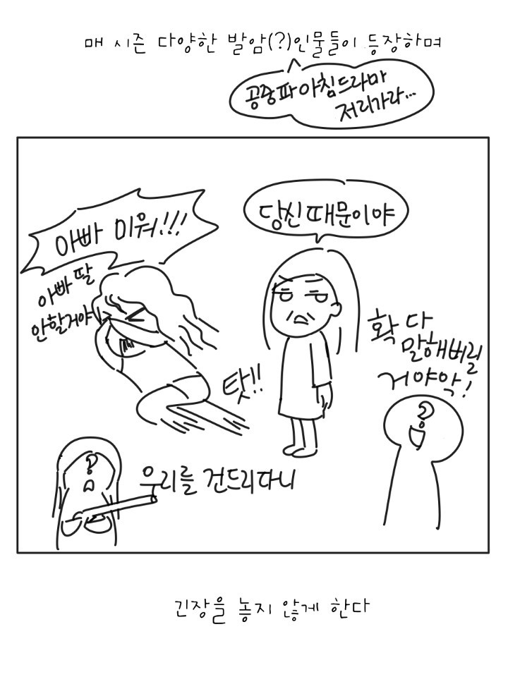 다른 리뷰들을 보면 심연을 계속해서 쳐다보면 그 심연도 나를 바라본다는 구절을 많이들 언급하는데 맞지 않는 이야기 같다. 드라마 주인공들은 애초부터 심연 그 자체다. 평범한 사람은 나 힘들다고 다른 이를 망가트리지 않는다. 스스로가 망가지지. 차라리 고전적 범죄무비가 솔직하지. 드라마는 드라마로 봐야 한다. 어쨋건 남의 피 위에 서서 살아가는 이들에게 해피엔딩은 없겠지. 대부 트릴로지의 엔딩도 결국 모두에게 버림 받는 걸로 끝나듯.