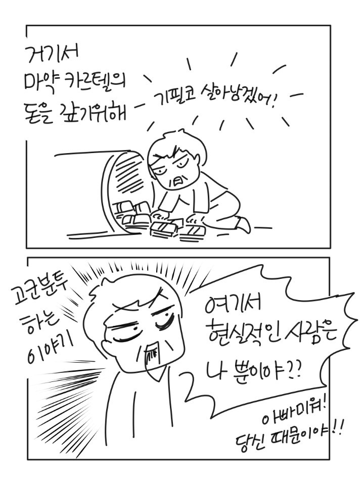 이런 드라마들을 보는 포인트는 끊임없이 나오는 어쩔 수 없었다는 변명들, 옳았던 옳지 않았던 모든 선택이 구렁텅이로 빠져가는 과정들 그리고 나는 나쁜 놈이 아니라고 계속해서 되뇌이는 망가져가는 자아를 보는 것이랄까.대부 같은 클래식 범죄물과 다른 포인트가 이곳. 예전에는 자신들이 악인이라는 개념은 있었는데 요즘은 아님. 곧 죽어도 난 일반인임.