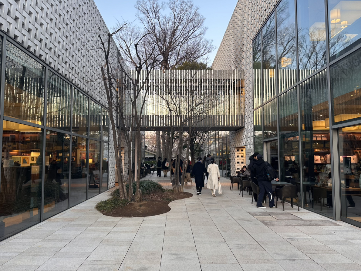 멀리서도 'T-사이트' 건물을 단번에 알아봤다. 건축물 외벽이 'T' 사인으로 되어 있어서 아이덴티티가 느껴졌다. 출입문에 한자 蔦屋書店, 영문으로 TSUTAYA라고 쓰여있었다. 건물은 나지막한 2~3층 높이로, 3개 동이 가운데 연결 통로로 이어져 있었다. 밖으로 나가지 않아도 중앙 통로를 이용해 다른 건물로 갈 수 있게 설계되어 있다.