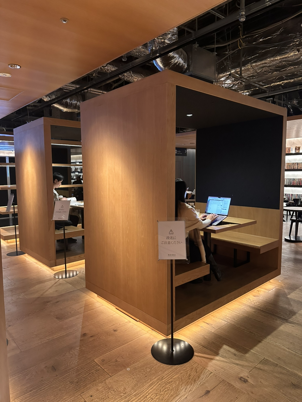서점, 라운지, 쉐어 스페이스가 연결되어 있지만, 각기 다른 컨셉의 인테리어라서 공간을 분리하지 않아도 분리된 느낌이 들었다. 유기적으로 연결되어 있는 느낌이 들었다. 마루노우치, 긴자식스 츠타야서점도 스타벅스와 연결되어 있는 것 같으면서 떨어져 있는 느낌이 들었는데 '연결성'을 고려해 설계된 공간같이 느껴졌다.