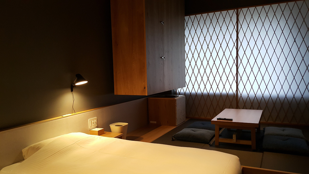 이곳을 지나 방으로 들어오면 재패니스 스타일을 모던하게 풀어낸 아늑하고 아름다운 디자인을 만날 수 있다. 다다미는 의자보다 훨씬 쓰임이 다양하다는것을 이곳에서 느낄 수 있다. 내일을 위한 일정도 체크하고, 차도 마시는 개인라운지가 되기도 하고, 짐을 편하게 풀어놓는 공간이 되기도 하고, 탁자를 치우고 매트리스만 놓으면 침대가 되기고 하는 다용도 공간! 무엇보다 매력적인것은 여행의 피로를 풀어줄 넓직하고 깨끗한 욕실!