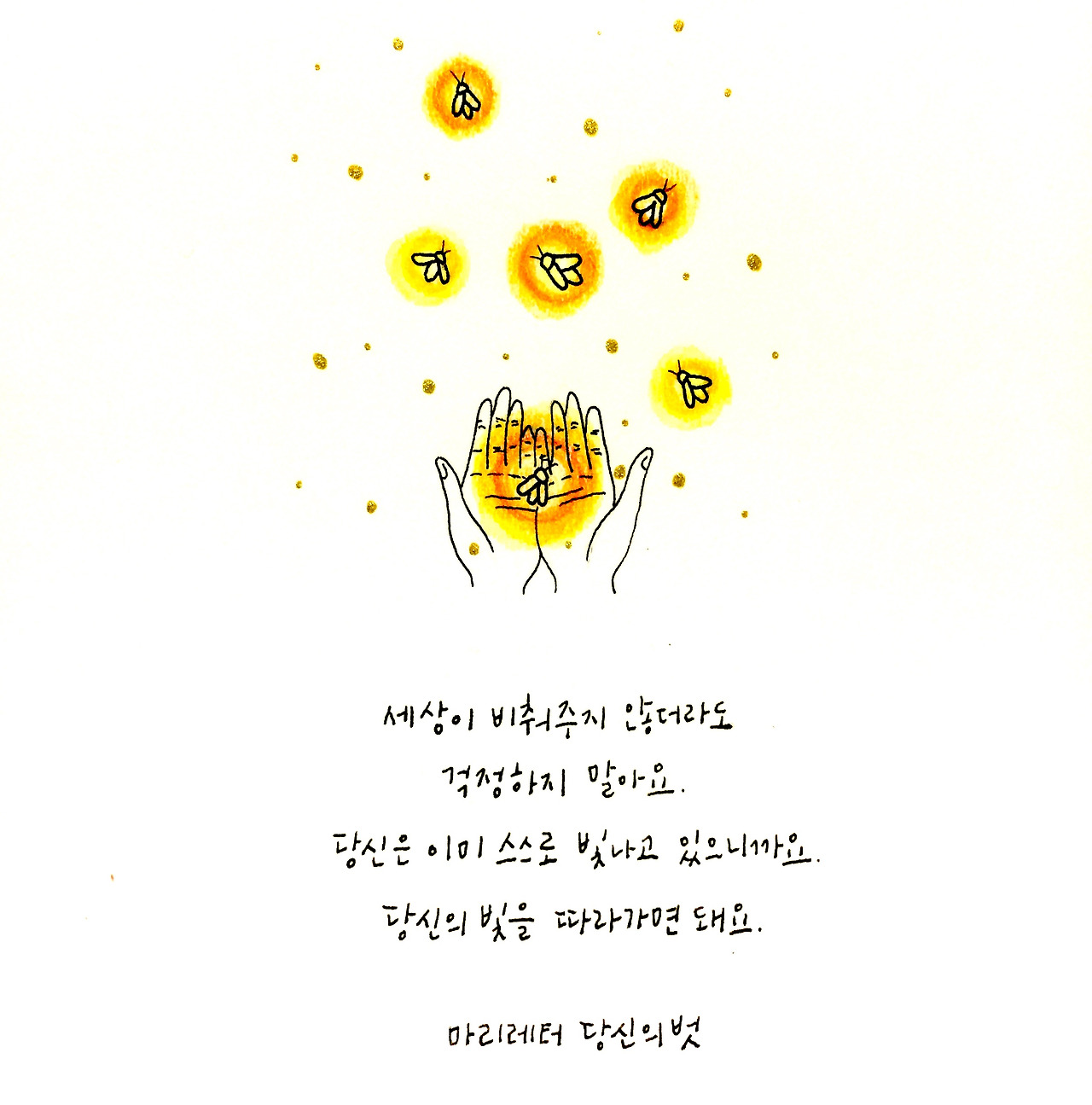 현실이라는 캄캄한 어둠을 나만의 빛으로 조금씩 밝히며 한 걸음 한 걸음 내딛어봐요 우리!
