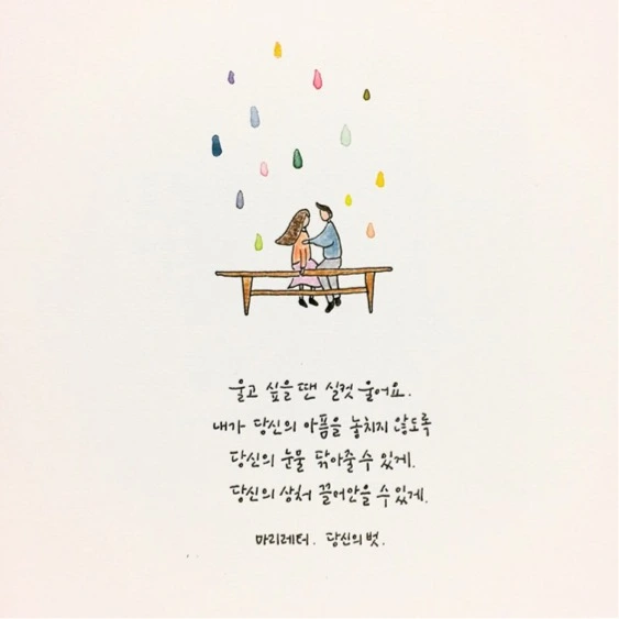힘들다고 하소연할 수 있고 자신을 위해 눈물 흘릴 수 있는 솔직한 당신이 더 단단한 사람이에요.