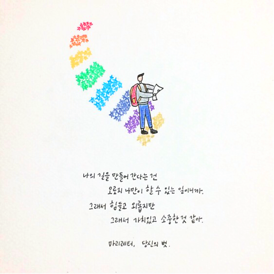 지금 너무나도 잘하고 있다고 꼭 말해주고 싶었어요.흔들리는 순간을 견뎌내고 누구보다 환하게 빛날 당신의 모습을 기대해요.