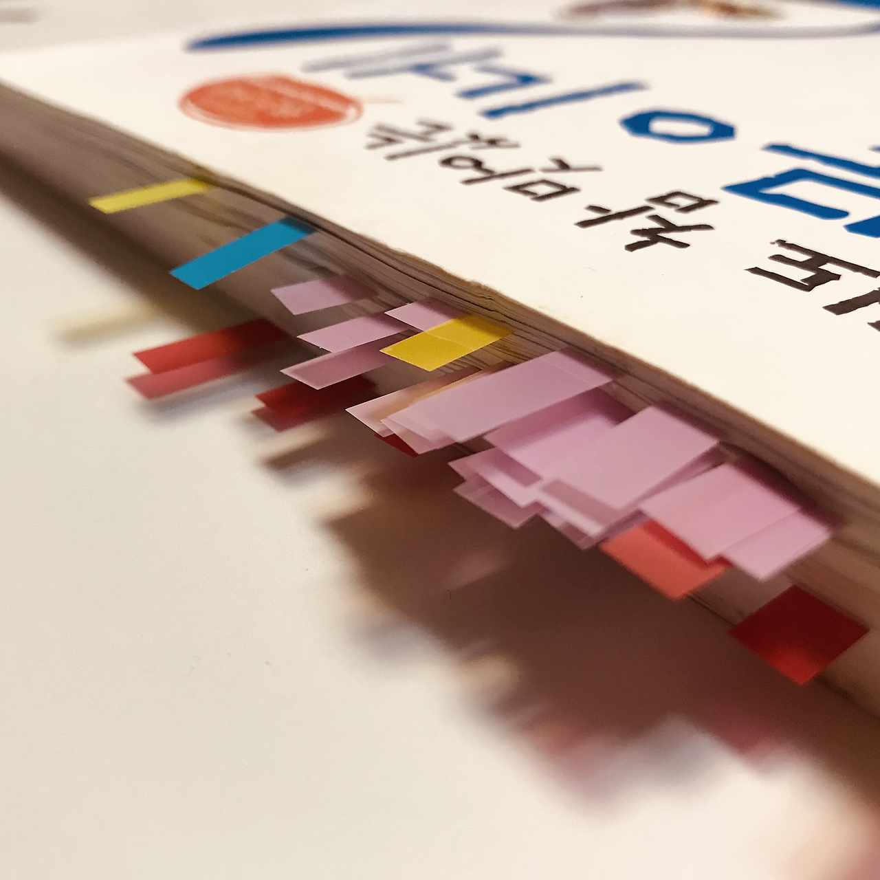 그런 내가 웬일로 오늘 점심은 한 그릇을 거의 다 비웠다. 동료와 오랜만에 함께 간 맛집은 정갈하고 정성스러워서 기분 좋은 포만감을 느끼게 했다. 함께 있던 이가 따뜻했던 것도 한몫했을 것이다. 점심을 근사하게 먹고 나니 다시 입맛이 도는지 저녁도 예쁜 접시에 그럴듯하게 차려 먹고 싶어졌다. 냉장고에 2주째 자리를 차지하고 있는 두부를 꺼냈다. 유통기한이 지났지만 뭔 일 있겠나. 조금 아프다 말겠지. 오랜만에 깐소 두부를 해먹기로 결정하고 요리책을 찾아 서재에 들어갔다. 요리책을 꺼내든 순간 내 눈에 비친 수많은 태그들. 집에서 당신을 간호할 때 놀이하듯 함께 붙인 것이다. 그 태그들을 마주한 순간 그 자리에서 혼자 주저앉아버렸다.
