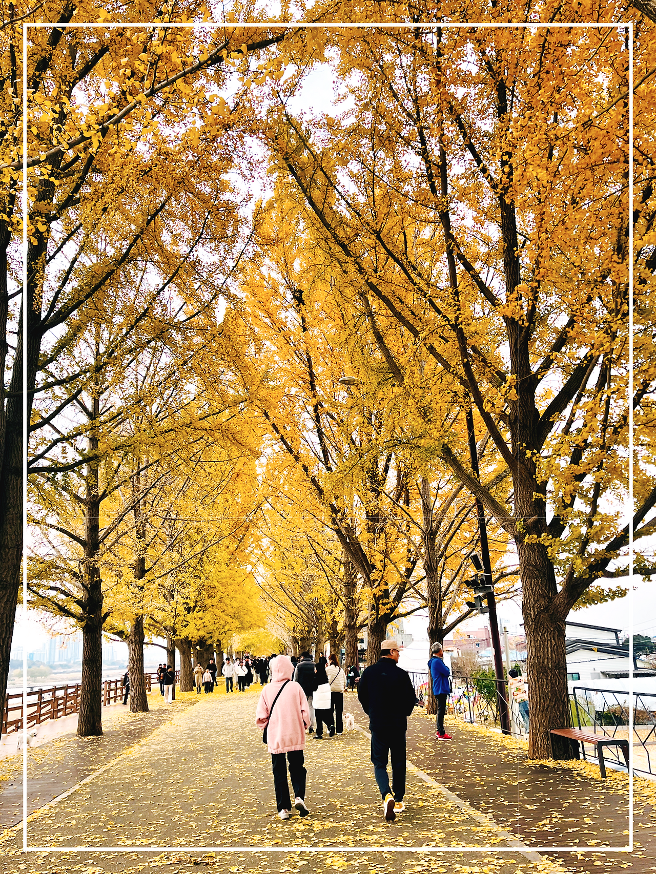 하지만 노란 잎이 끝없이 머리 위로 펼쳐진 그 터널 안에서는 모든 사람이 작은 점처럼 보였고, 우리는 잠시 세상의 무게를 잊은 채 노란 빛 속을 천천히 걸었다.