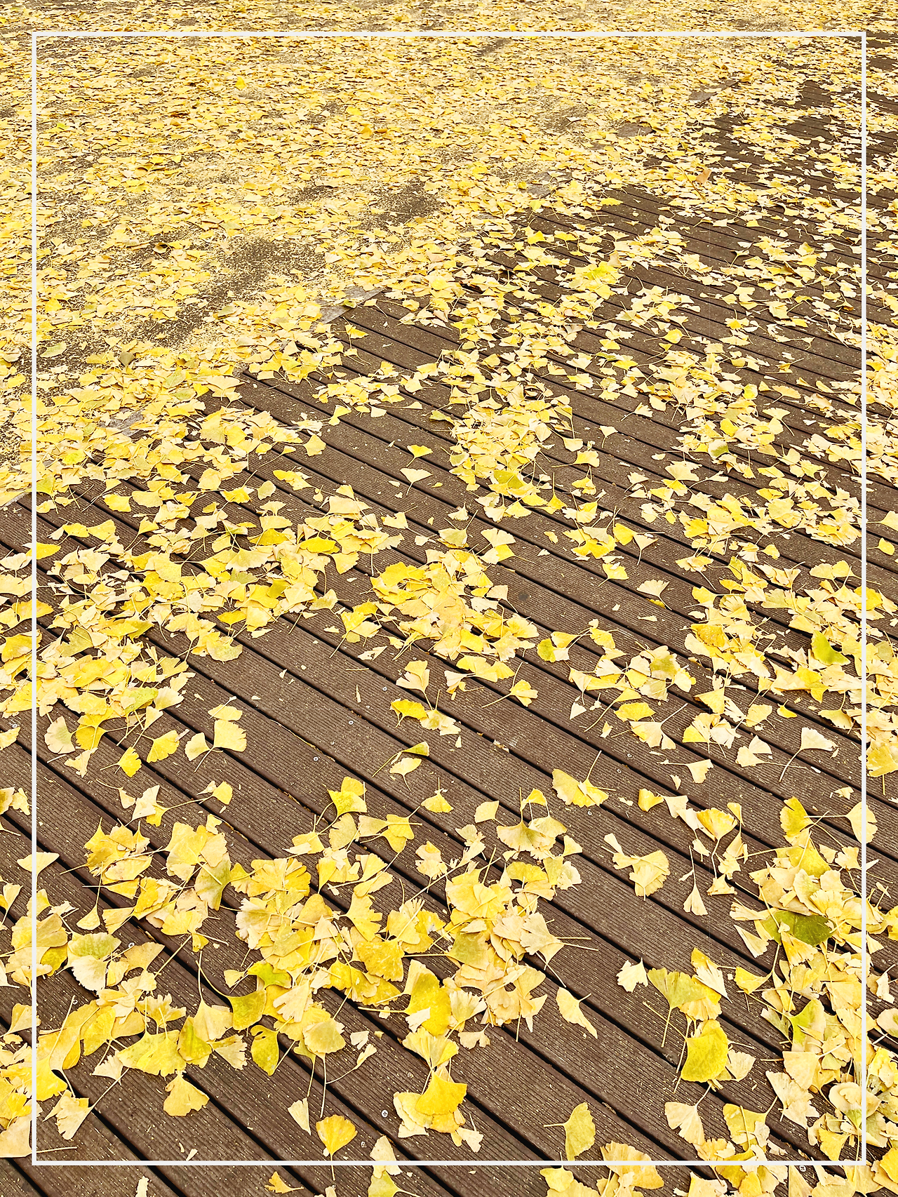 나무에 남아 있는 잎보다 길 위에 떨어진 잎이 더 많았지만 그마저도 하나의 장관이었다. 마치 노란 눈이 천천히 멈춰 선 풍경 같았다.