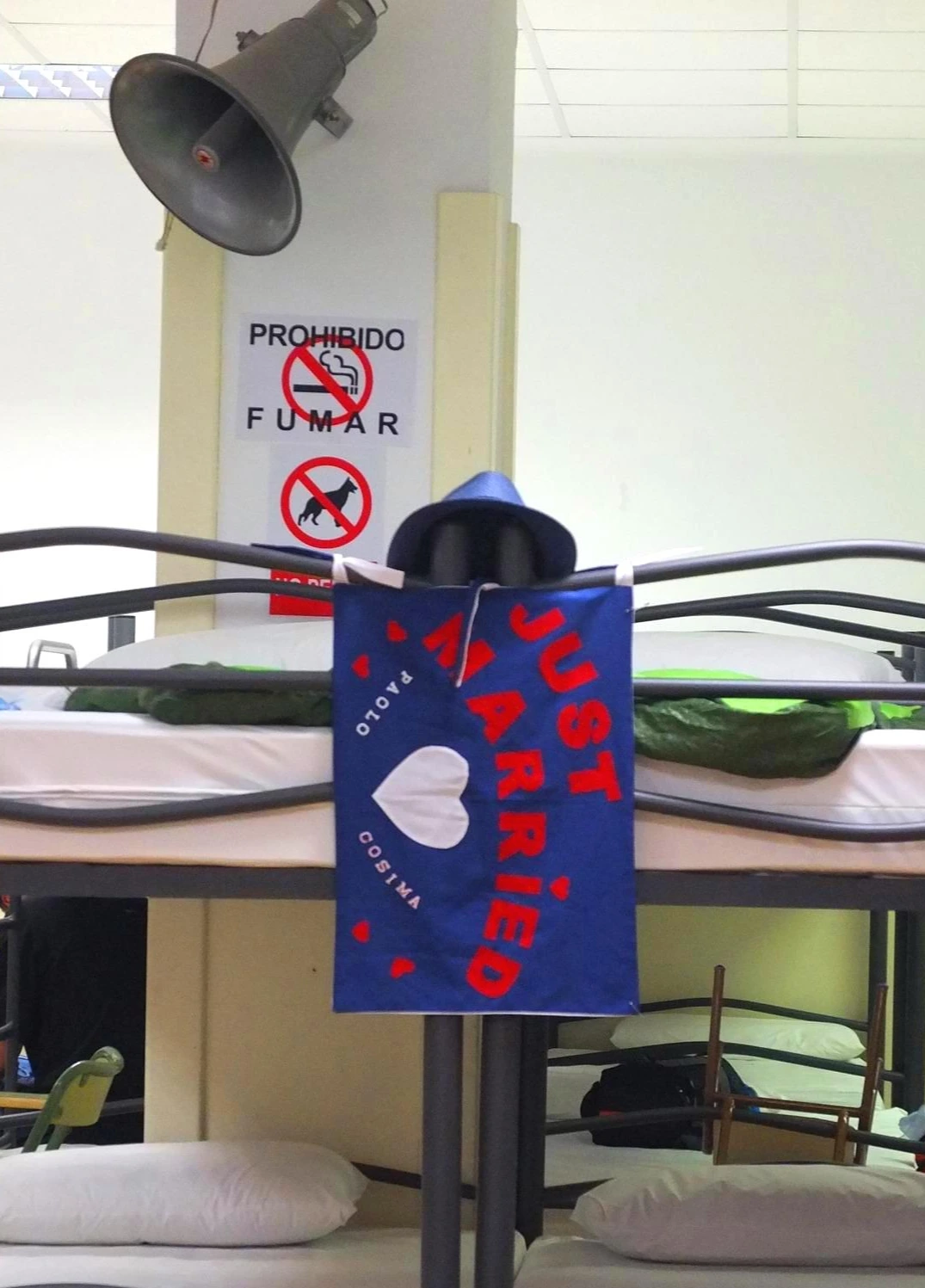 어제 순례자 숙소 접수할 때 내 뒤에 서 있던 커플은 ‘Just married’라고 쓰인 깃발을 들고 있었다. 오전에 해안길을 따라 걸을 때 앞서 걷던 이들이다. 매우 다정해보인다 했더니 역시나 갓 결혼한 신혼부부였다.