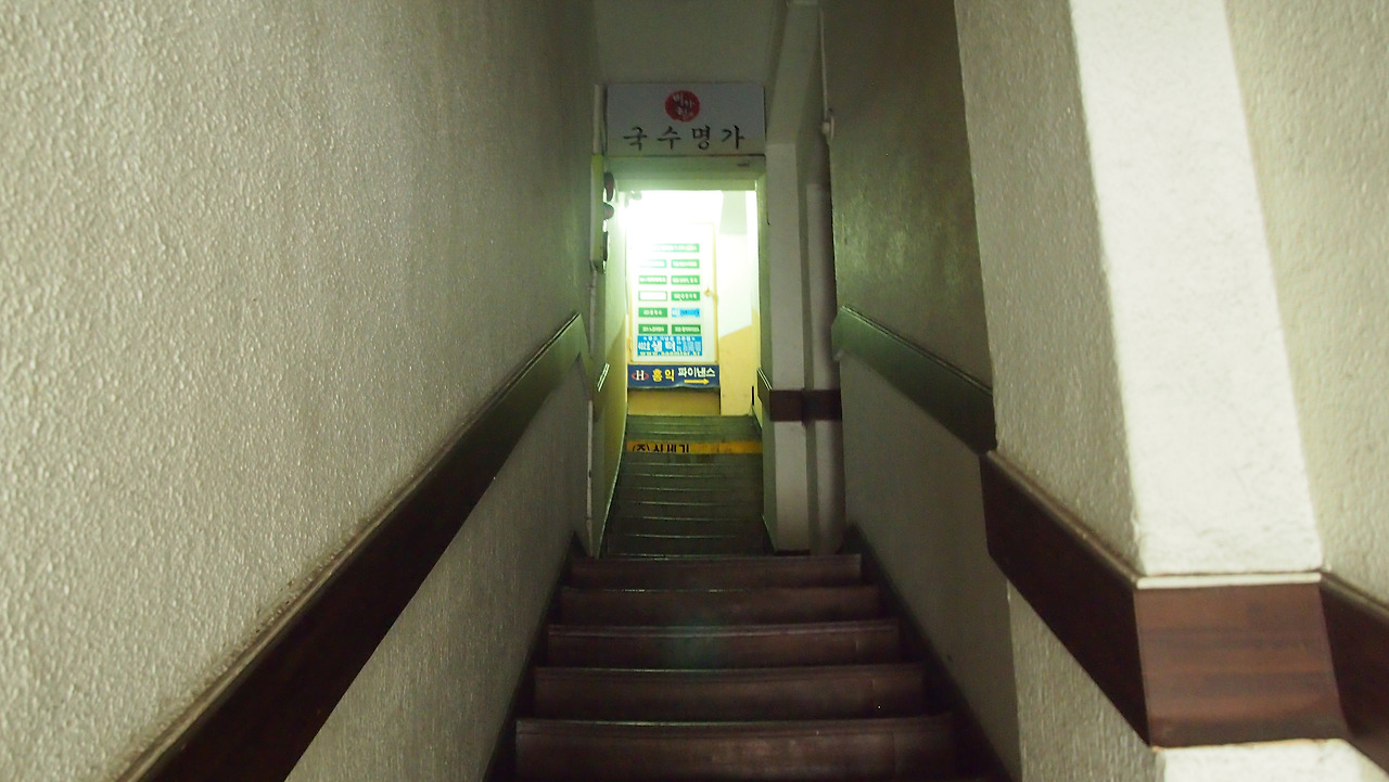 바닥은 오래전부터 사용하지 못하게한 인조석 물 갈기로 된 입구계단은 매우 급했고, 어두운 계단의 백열등은 3층벽에 겨우 매달려 있어 조심스럽게 손으로 돌려켠후 올라가야만 했다.