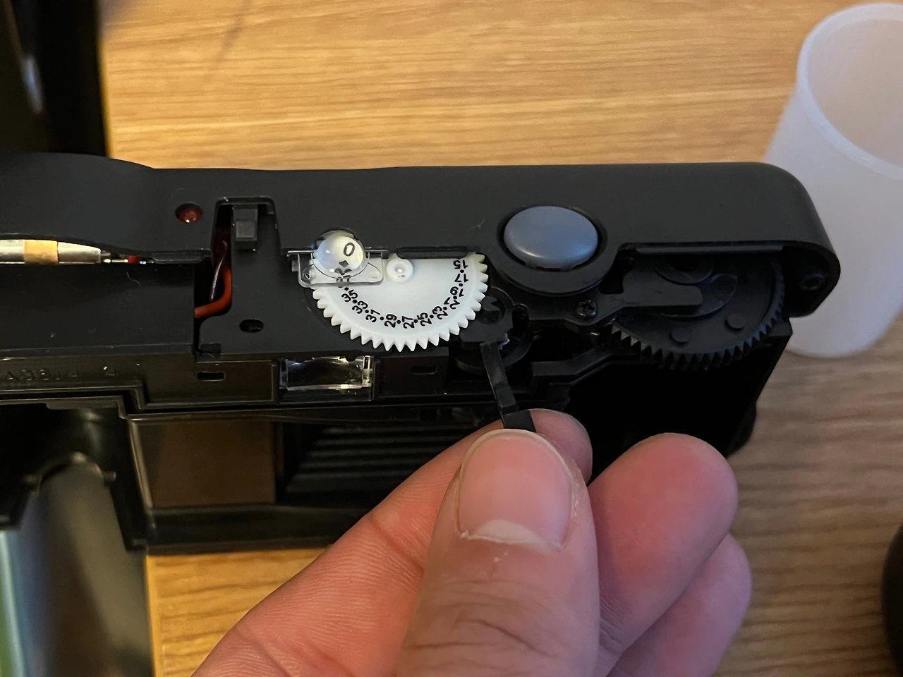 필름 카운터를 지탱해주는 고리가 부숴진 거였다. 그때부터 와인딩을 죽어라 해도 '타닥 타닥' 필름이 롤러에 걸리는 저항 소리가 나지 않는다. 롤링이 제대로 되고 있는지 알 수가 없다.