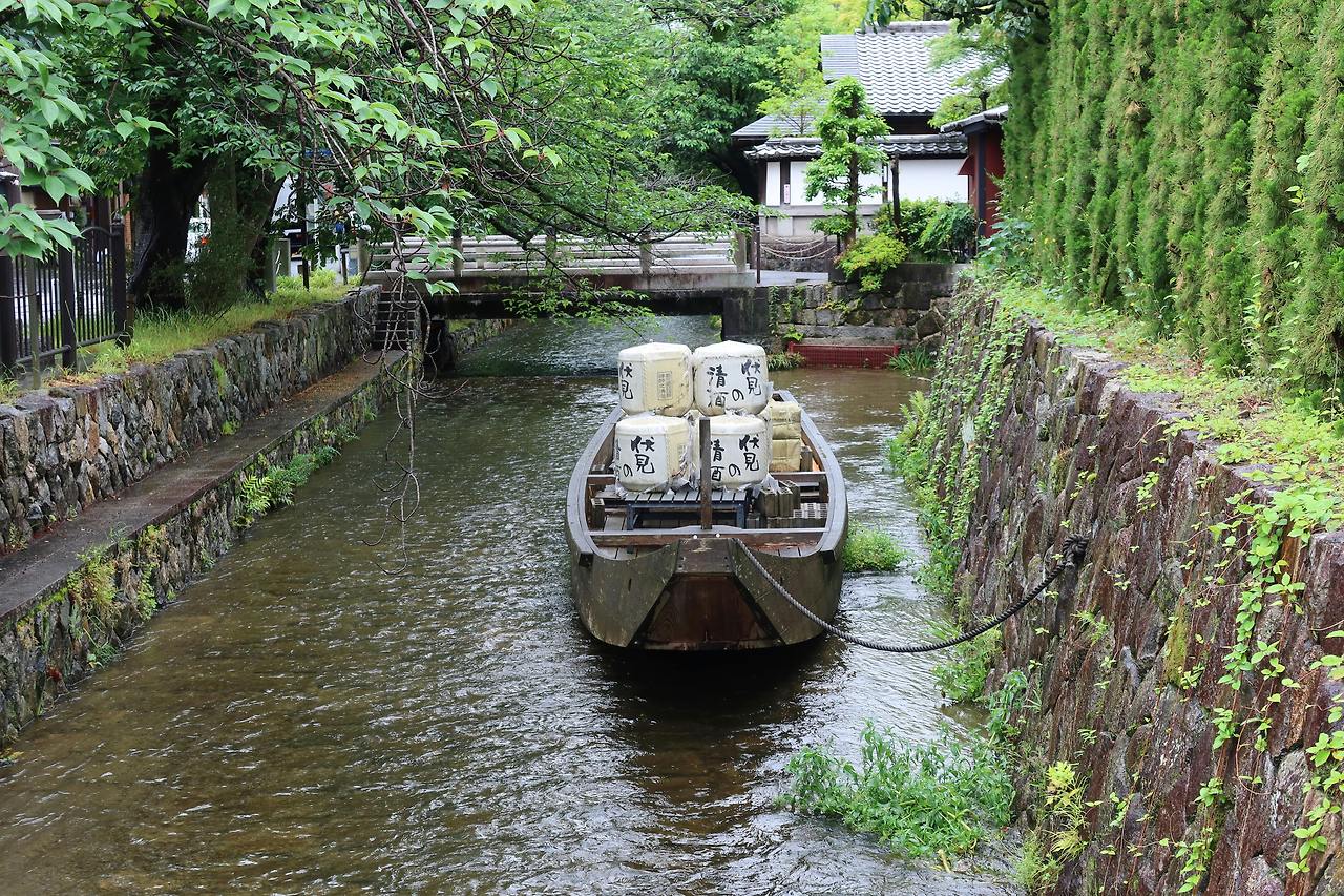 후시미는 예부터 ‘후시미즈(伏水)’라 불릴 만큼 지하수가 맑기로 유명했다. 여기에 운하를 통해 일본 각지에서 쌀이 대량으로 들어오면서 양조업이 크게 발달했다. 이곳에서 빚은 사케는 다시 물길을 따라 오사카와 에도(현재의 도쿄)로 운반되었다.