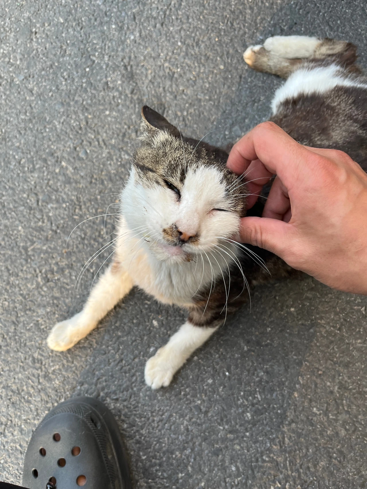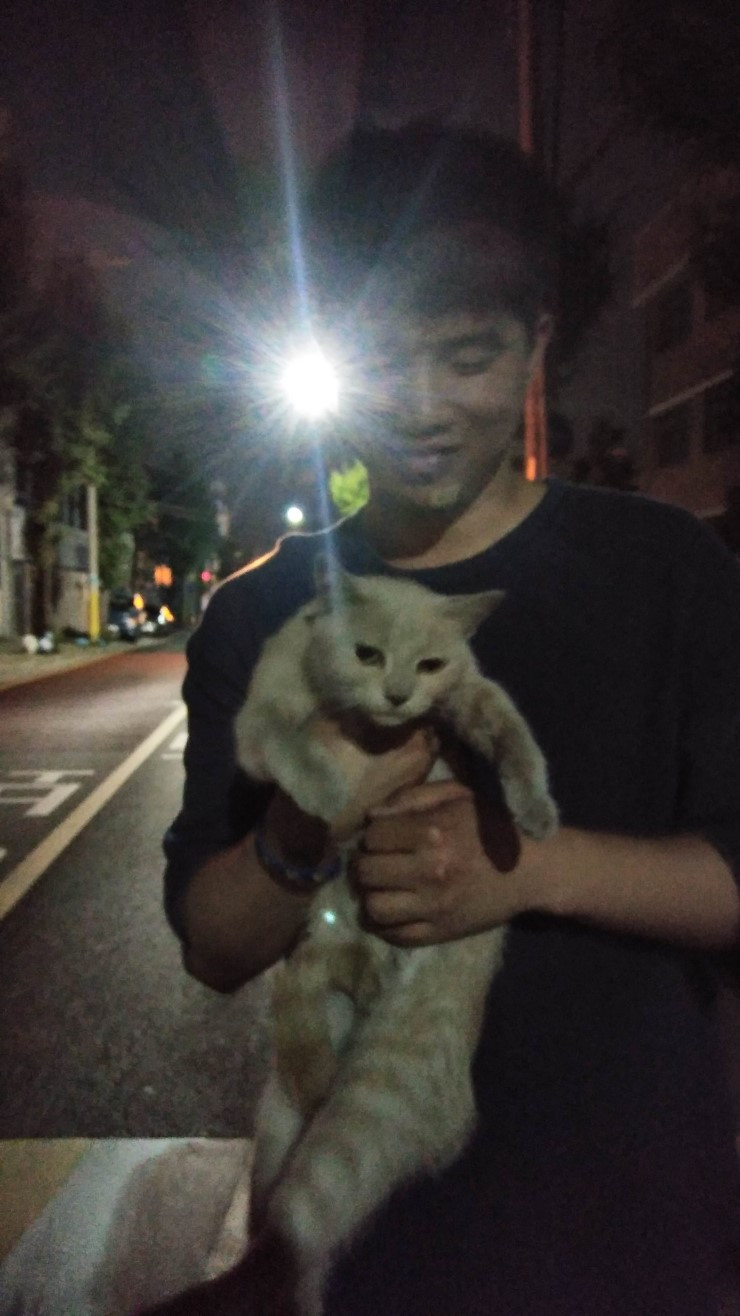 이번에는 다가오는 경우였다. 친구랑 집 근처에서 술 마시다가 뒤늦게 오는 지인을 마중 가는 길이었다. 보통과는 다른 느낌의 고양이를 보고선 습관적으로 불렀다. 고양이는 다가왔다. 왜인지 모르지만 문득 안고 싶어져서 품에 안고 걸음을 마저 옮겼다. 그리고 가만히 안긴 고양이와 함께 다시 술집으로 돌아왔다. 잠시 후 멸치를 가져다주었으나 먹지 않았다. 아쉽지만 보내줄 때가 되어 놓아 주었다.