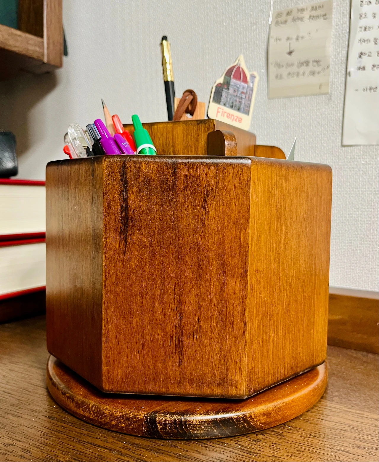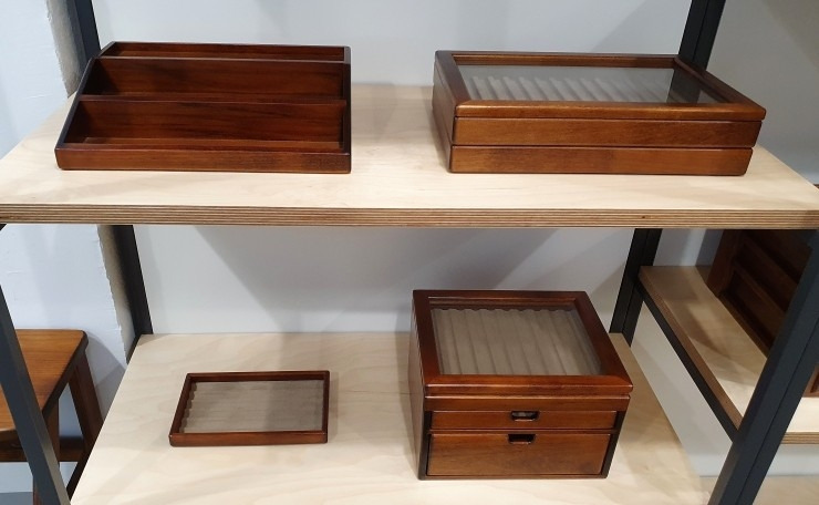 토요오카 크래프트는 만년필 트레이와 시계 보관함으로 유명한 브랜드입니다. 전 이 두 가지가 아닌 연필꽂이에 관심 있었습니다. 화면 바깥에선 어떤 느낌인지 확인하려고 매장에 가 봤습니다.