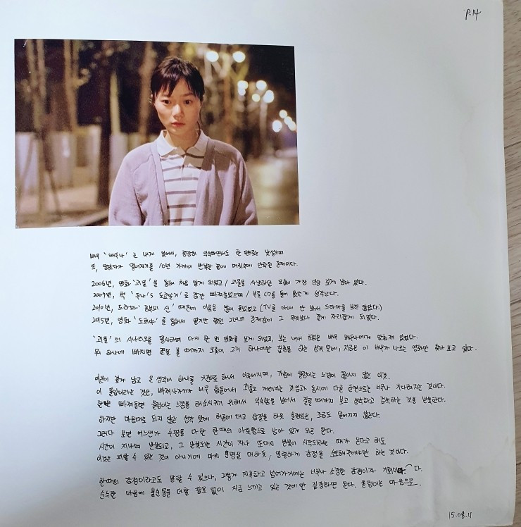 다른 노트에 쓰던 '영화 일기'입니다. 좋아하는 배우(이땐 배두나 님이었습니다)와 좋아하는 영화를 저만의 방식으로 표현하고 싶었습니다. 스물세 살에 했던 일이에요.