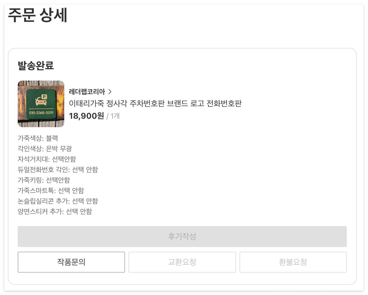 주차 번호판을 구매했습니다. 확인해 보니 더는 판매 활동을 안 하시네요.