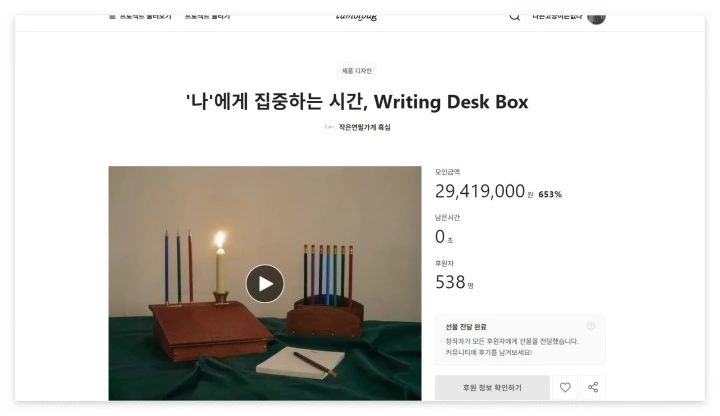 발길을 끊은 건 여러 이유가 있습니다. 어느 순간 비슷비슷하다는 생각이 들었고, '이번에는 괜찮겠지' 했는데 실패하거나, 쓸모 있으리라 믿고 사는데 쳐다도 안 보거나, 때로는 딜레이 되거나 논란이 생기거나 등등. 텀블벅에서만 공개한다고 하고 반응이 좋으면 공개된 일반 사이트에서 판매하는 경우도 종봉 봤습니다. 때로는 돈이 아까웠고 때로는 실망하거나 피로감을 느꼈습니다. 여러 이유가 더해져 차츰 안 들어가게 됐고, 결국 회원 탈퇴로 이어졌습니다.