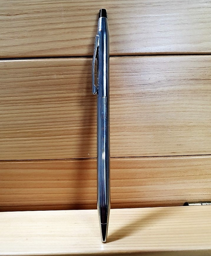 크로스 클래식 센추리 러스크롬 볼펜입니다. 이름 참 길고 어렵네요. 다이어리에 쓰려고 샀습니다. 다이어리에 껴 두기 위해서 가는 제품으로 찾다가 추천받아서 사게 됐죠. 너무 가늘어서 적응이 안 되고 살짝 미끄러운 느낌이 있긴 하지만, 필기감이 매우 좋습니다. 볼펜은 이것처럼 트위스트 방식으로 된 걸 좋아합니다(트위스트식 볼펜은 옆으로 비틀면 심이 나오고 노크식 볼펜은 버튼을 누르면 심이 나옵니다).