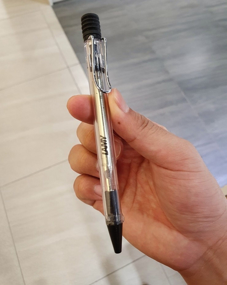 라미 사파리 볼펜입니다. 쓸 때 손에 힘이 많이 들어가서 답답하고 부담되기에 잘 안 쓰게 됩니다. 글을 빨리 쓰기 어렵다고 해야 할까요. 손에 땀이 많이 나시는 분들껜 불편할 수 있습니다.