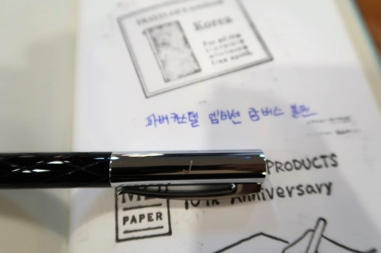 다른 건 크게 상관없는데 한 가지 불편한 점이 있었습니다. 한번 글을 쓰면 삼십 분이건 한 시간이건 만년필에서 손을 떼지 않고 쓰는지라 땀이 나곤 했고, 그러면 손잡이 재질 때문에 미끄러졌습니다. 흐름이 끊기는 게 싫었지만 하는 수 없이 손과 만년필을 닦고 다시 써야 했죠.