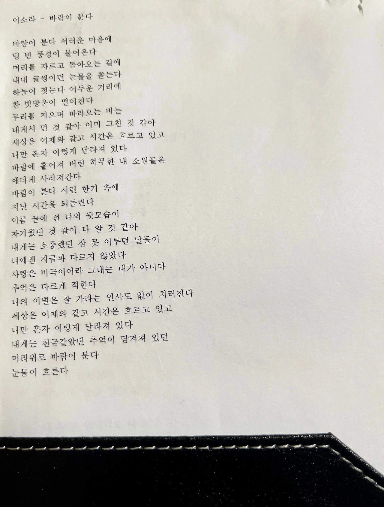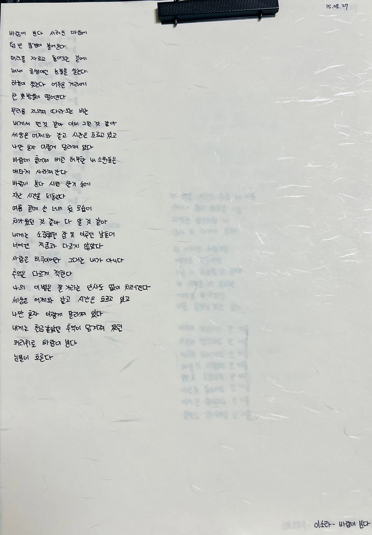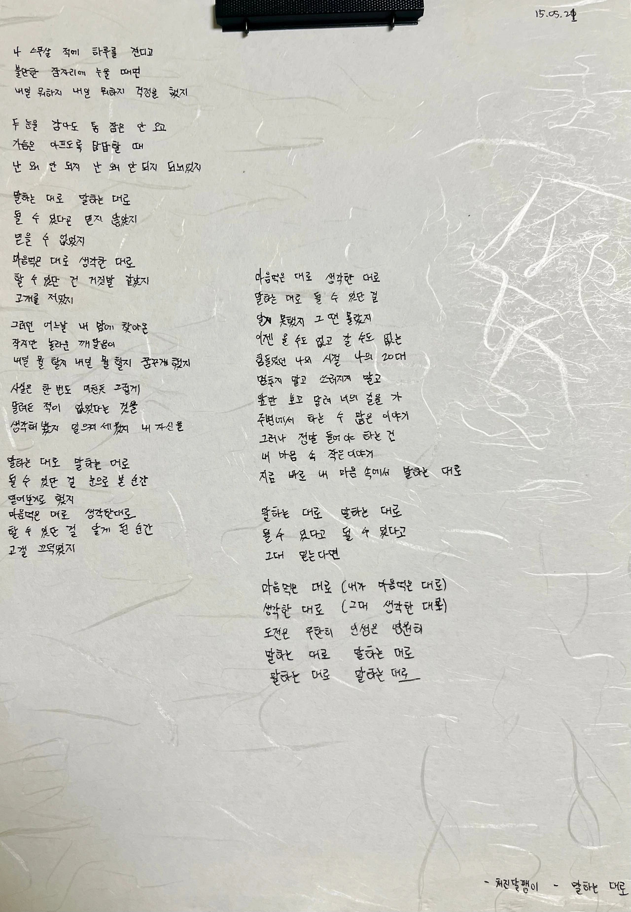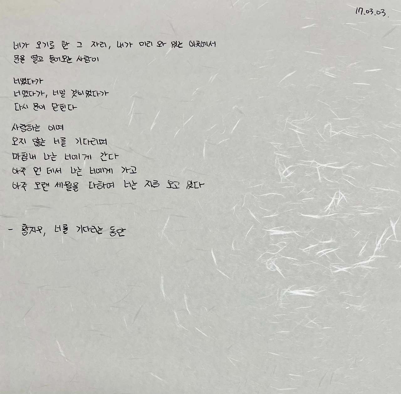 '가사를 쓰듯 글을 쓰고 싶다'라는 생각을 해서인지, 그저 마음에 담고 싶어서인지는 모르겠습니다. 오래가진 않았지만 그래도 쓰는 동안 즐거웠습니다.