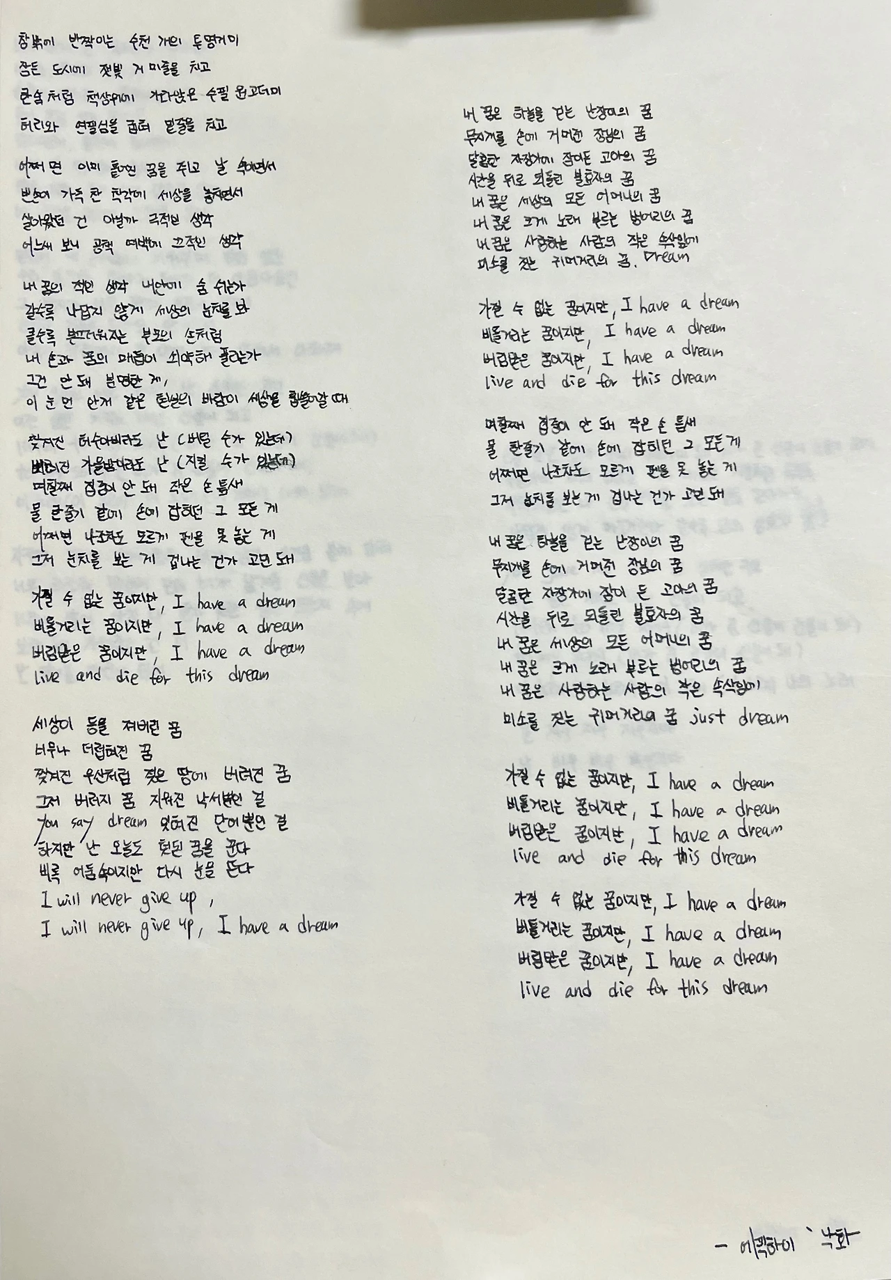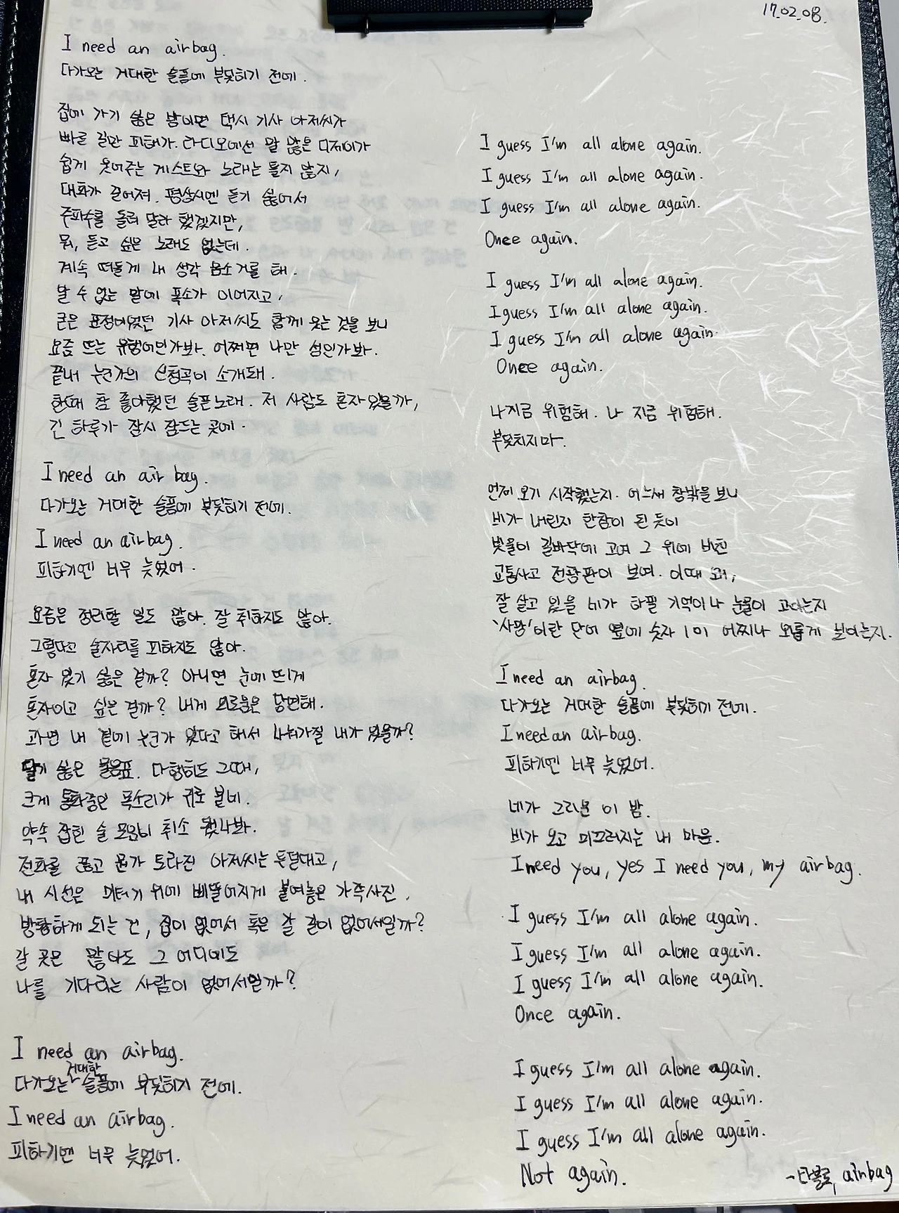 옮겨 적은 가사 목록은 아래와 같습니다.