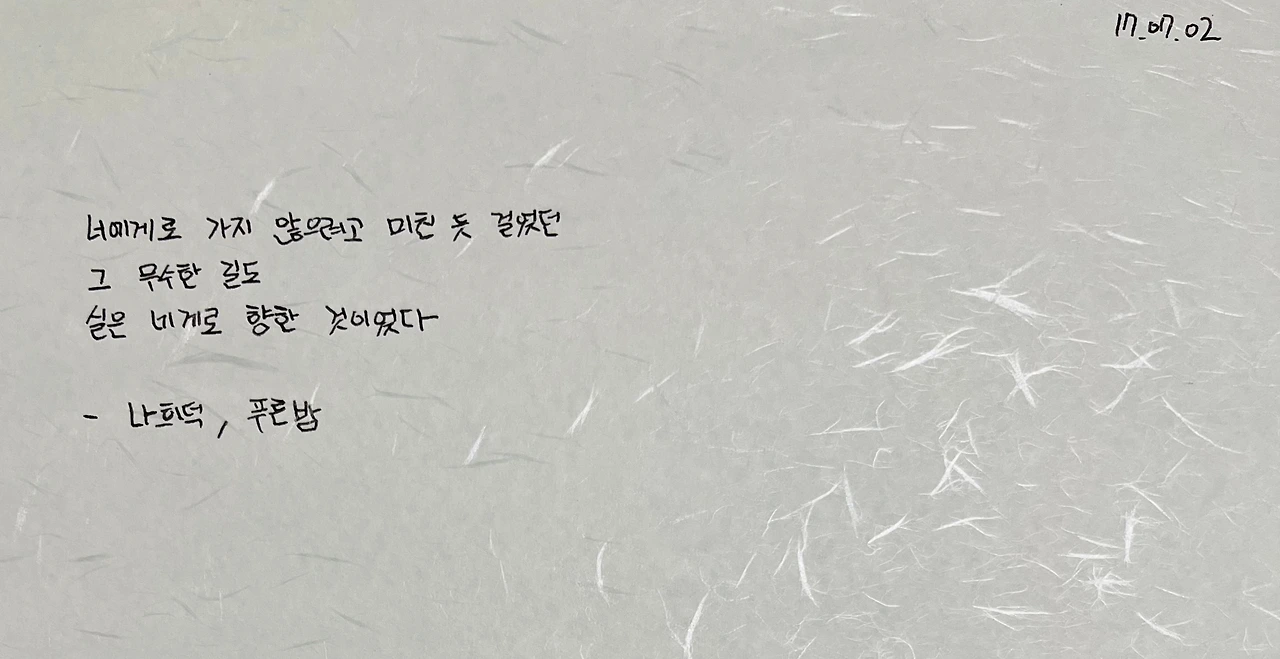 여러 번 옮겨 적은 글입니다. 필사라는 게 뭔지도 모르고 그냥 '좋아서 옮겨 적었던' 시절이죠. 아쉽지만 고등학생 때 남긴 필사 기록은 이뿐입니다. 이제는 안 그러지만, 이땐 부끄러워서 노트를 버렸거든요.