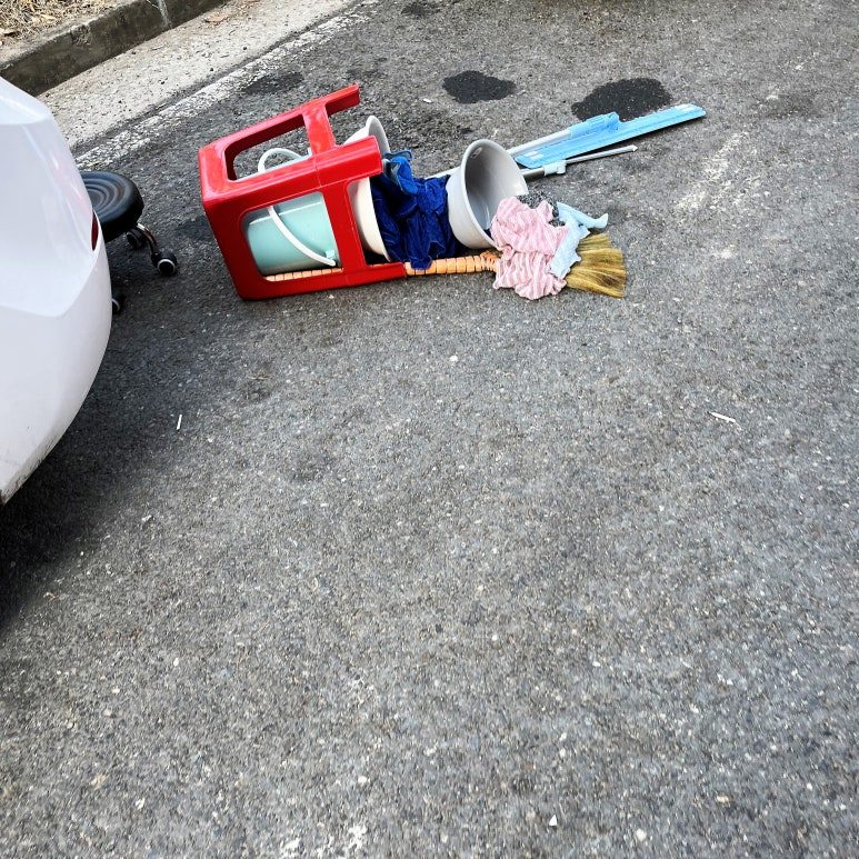 아반떼를 파는 대신 내가 몰기로 했다. 싣고 다닐 작업 도구가 여럿이었다. 플라스틱 의자, 동글뱅이 의자, 빗자루, 쓰레받기, 플라스틱 용기 네 개(세탁한 걸레용, 쓰고 더러워진 걸레용, 수세미와 샤워 타월용, 작은 도구들을 담는 용도), 긴 스퀴지, 밀대, 오븐 클리너, 락스, 주방 세제, 기역 자 헤라 두 개, 일자 헤라, '청소 완료. 신발 벗고 들어가세요.'라고 적은 종이, 스퀴지, 이런저런 솔 등등. 이 외에도 작업복, 장화, 가방, 보안경, 손목 보호대 들을 샀다.