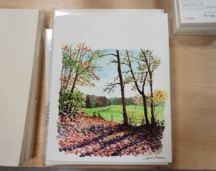 이런 디자인도 있나 싶던 찰나에 직원분이 다른 고객이 표지를 그린 거라고 알려 주셨습니다. 샘플이라서 비매품입니다.