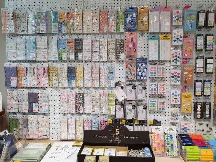 볼펜과 마스킹 테이프와 스티커와 공책 등등입니다.