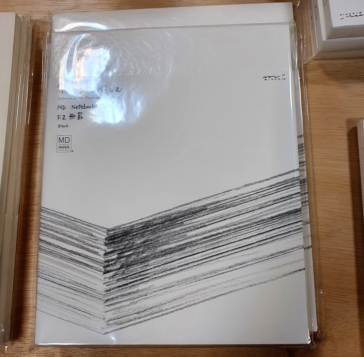 '완전 내 스타일이다' 싶어서 보고 있는데 직원분이 말씀하셨습니다. 칠해진 부분은 포장지라구요. 아무런 무늬가 없는 표지였습니다. 바로 위에 있는 공책과 똑같은 제품입니다.