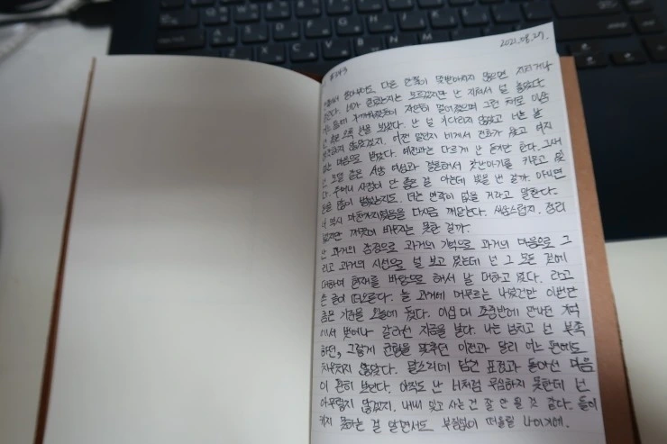 지금은 '살면서 쓰는 #4' 노트를 끼워서 쓰고 있습니다.