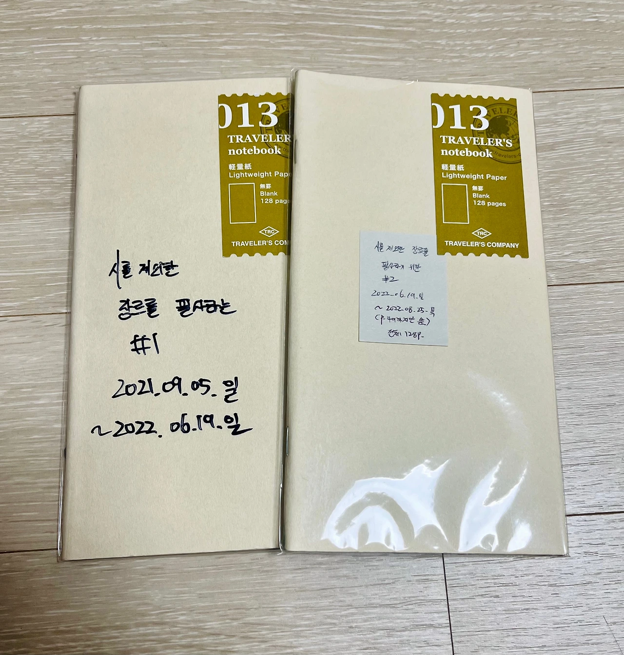 트래블러스 노트를 알게 된 건 이천십팔 년쯤입니다. 이름은 많이 들었지만 비싸고 종이 장 수가 적다는 이미지였죠. 매장에 처음 방문했을 때에도 관심이 없었건만 또 한 번 들러서 다시 본 뒤로 확 꽂혔습니다. 정착하고 싶으신 분들께, 인생 노트를 찾으시는 분들께 권해 드리고 싶습니다.