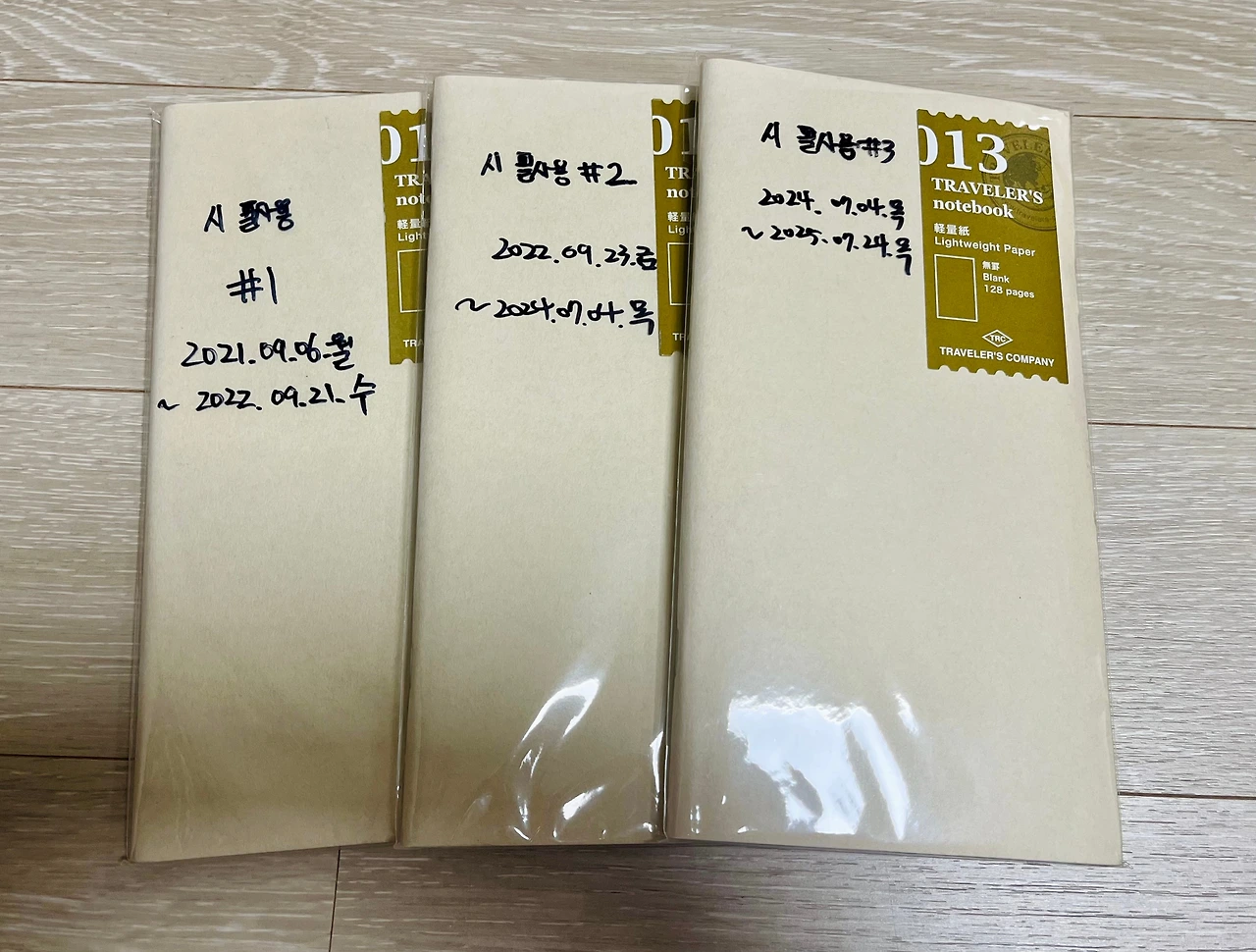 더는 판매하지 않는 듯하네요. 다 쓴 노트 두 개와 곧 쓸 노트 한 개입니다.