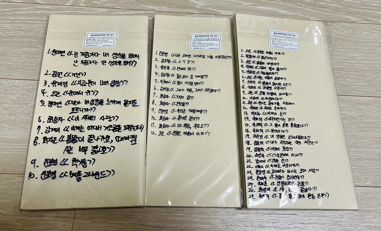 파악하기 좋도록 뒷면에 목록을 적었습니다.