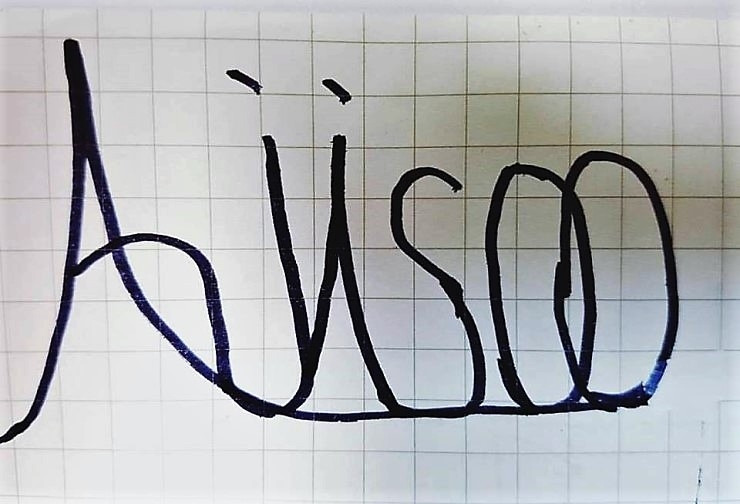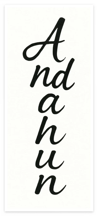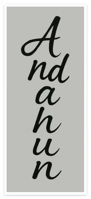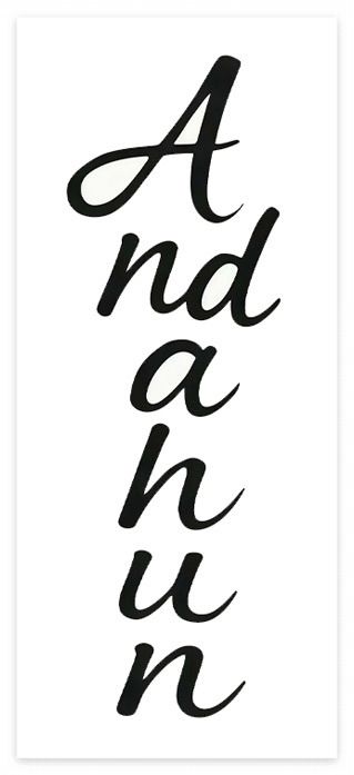 스무 살 넘어서 만들었는지 고등학생 때 그랬는지는 흐릿합니다. 캘리그래피가 뭔지 모를 때부터 글자를 그림 그리듯이 쓰곤 했고, 그러다가 제 이름으로 이런 걸 만들었습니다. 낙서랑 크게 다를 바 없는 상태이죠. Anjisoo에서 A위에 나머지 글자를 태운 모양을 한 획으로 그리려 했습니다. 지인이 이 글씨를 일러스트레이터로 작업해 줬습니다.