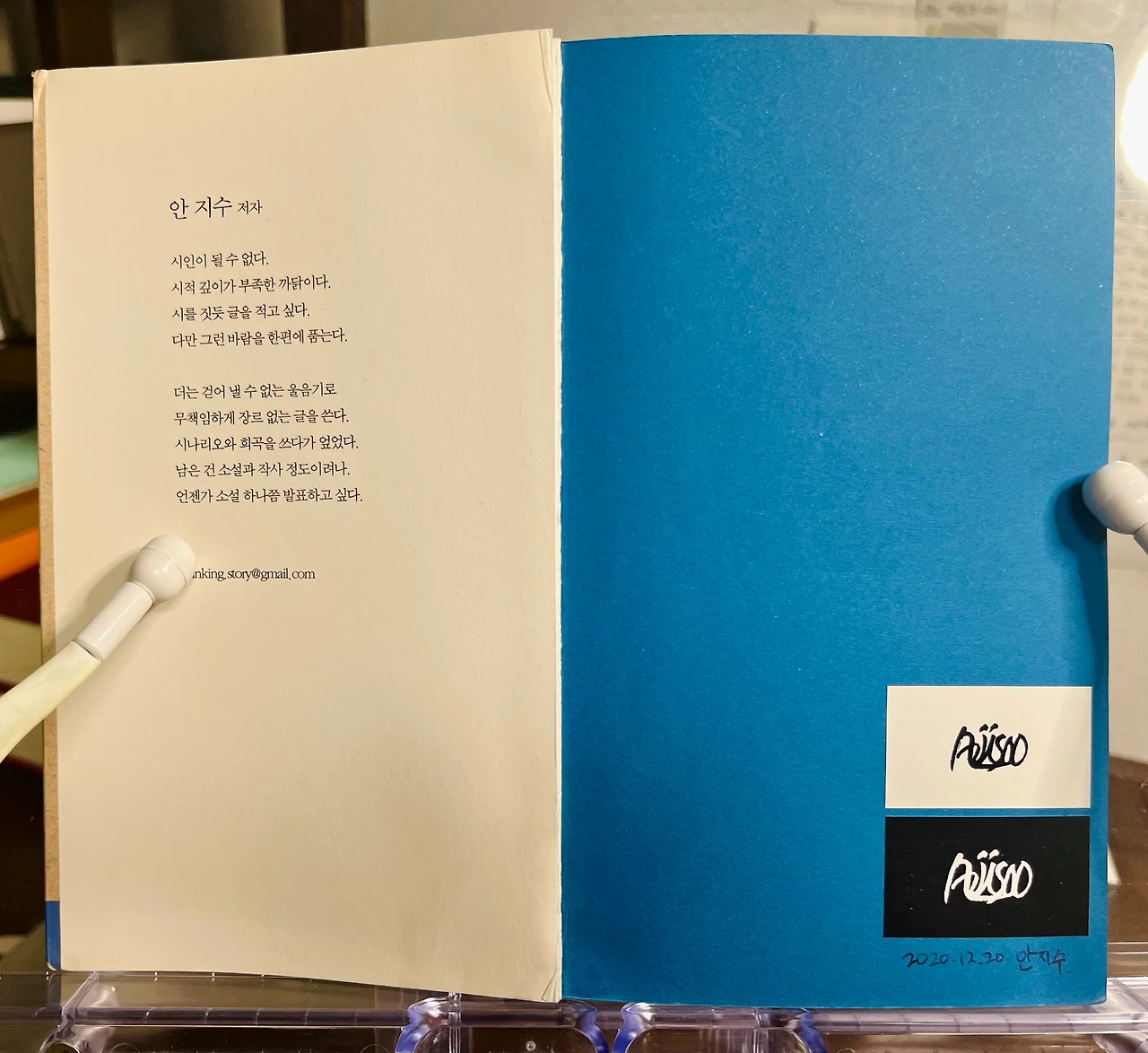 이름으로 로고 스티커를 만드는 일은 2020년에 시작했습니다. 제 첫 에세이를 선물할 때 붙여서 드리곤 했고, 아직 꽤 많이 남아 있기도 합니다. 그러다 2025년 5월, 개명 처리가 완료되어 새로운 이름으로 살게 됐습니다. 두 번째 책은 '안다훈'(개명 후)으로 준비하는데 '안지수'(개명 전)로 된 스티커를 붙일 수 없어서 새로 제작했습니다.
