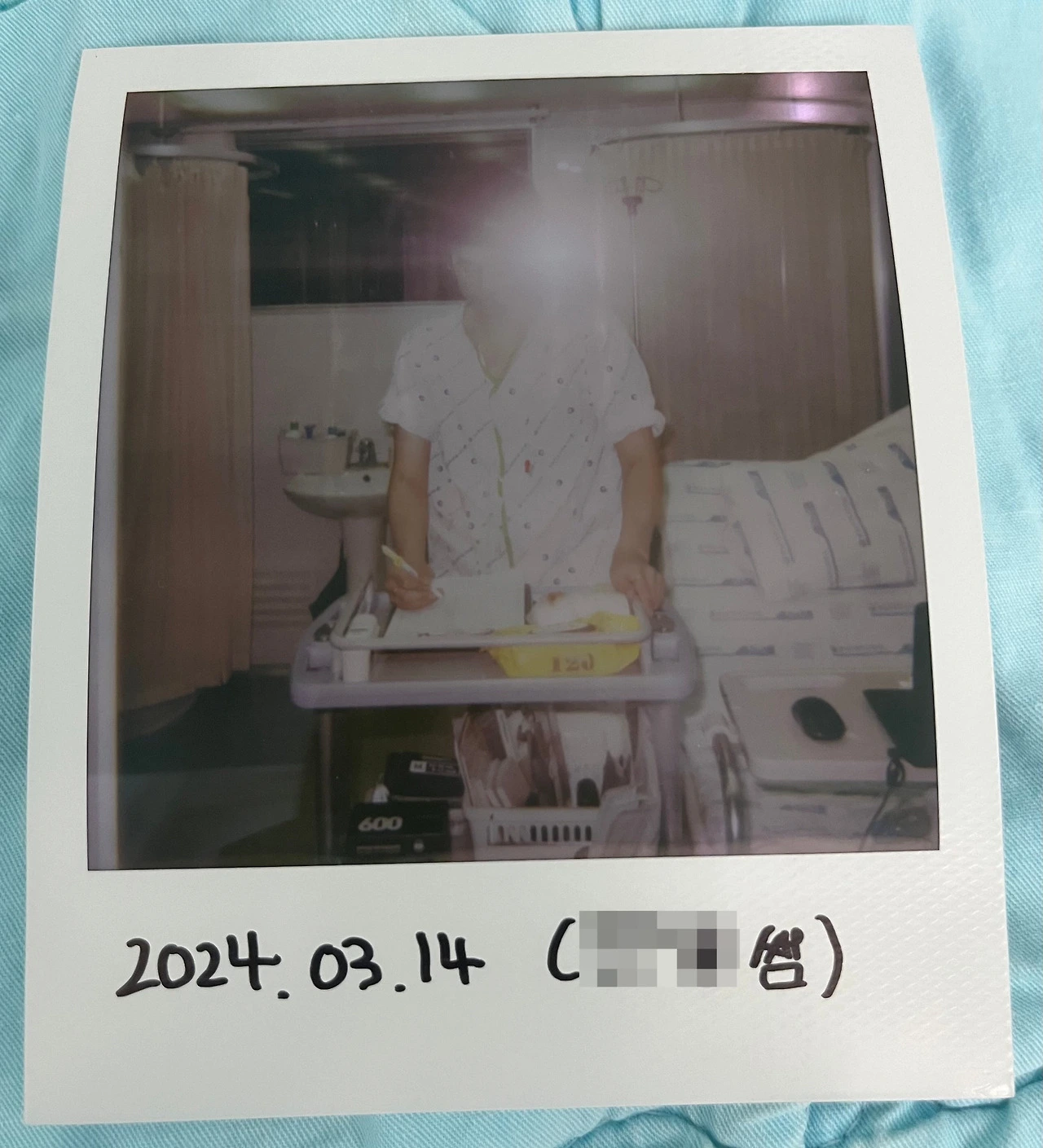무균실에 입원한 마지막 한 달은 폴라로이드 카메라를 구입해서 간호사 쌤들이랑 사진을 찍었다. ‘폴라로이드 600 카메라’로 구매했고, 약 십팔만 원으로 가격이 좀 있다. 필름도 저렴하지 않다. 내가 구매했을 땐 여덟 매에 이만 구천 원쯤이었다. 초반에는 간호사 쌤들이 들르셨을 때 한 장 찍어 달라고 부탁했다. 찍어 주시면 나도 쌤을 찍고 네임펜으로 사진에 날짜와 이름을 적어서 선물로 드렸다. 나중에는 쌤들이랑 둘이서 찍었는데, 두 장을 찍어서 한 장씩 나눠가졌다. 단독 사진 다섯 장과 같이 찍은 사진 여섯 장을 선물했다. 필름 종류는 색상과 프레임을 기준으로 나뉜다. 컬러 필름은 원형과 사각형 프레임이 있고 흑백은 사각형 프레임만 있는 듯하다.