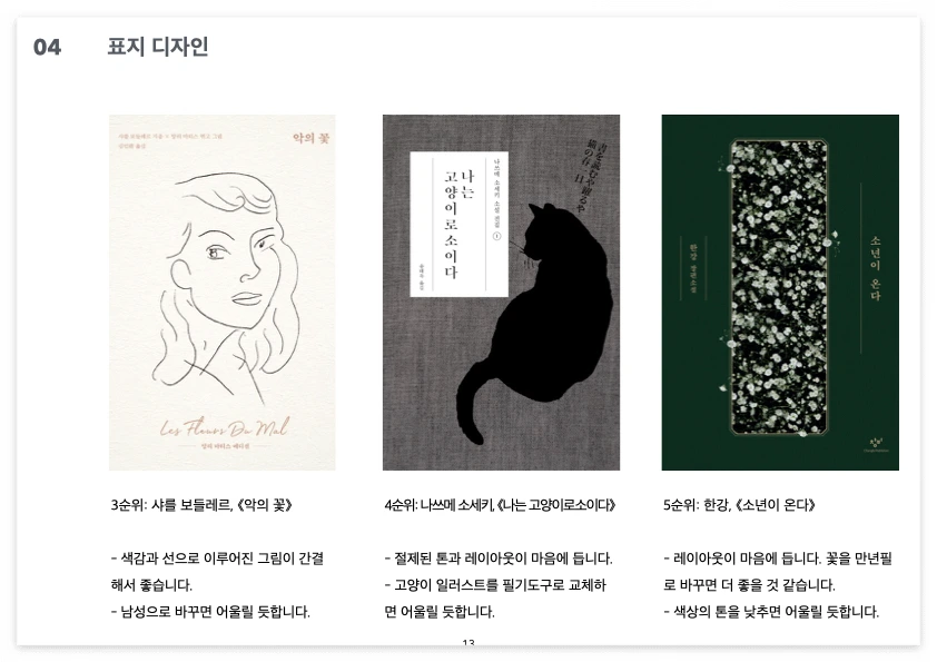 실은 '표지 디자인' 챕터에 싶은 이미지가 네 장 더 있었습니다. 하나하나가 감각적이어서 포기하기 쉽지 않았습니다.