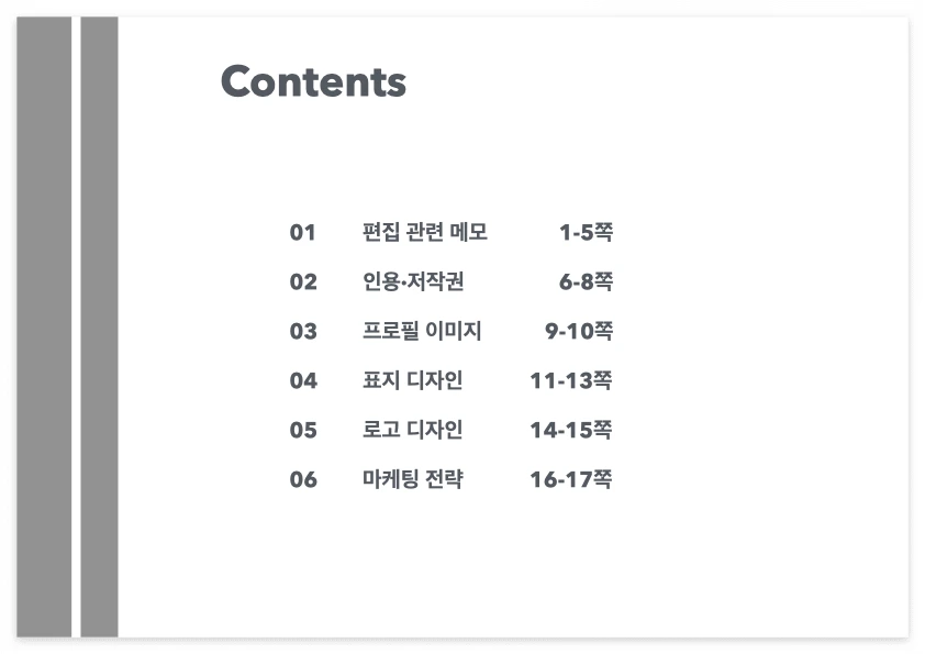 목차 항목은 다른 디자인을 참고해서 만들었습니다. 실은 참고라고 말씀드리기 민망한 정도죠.