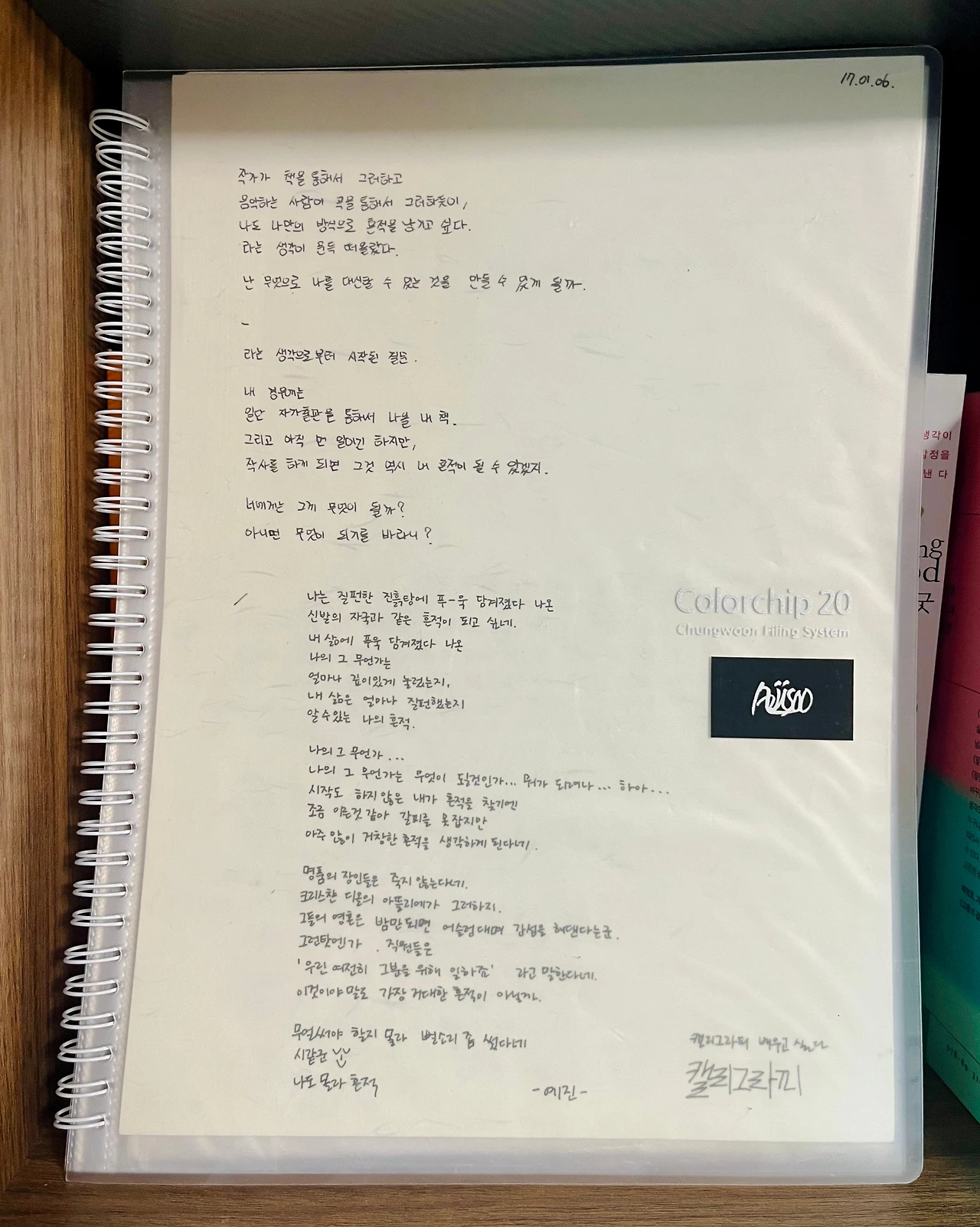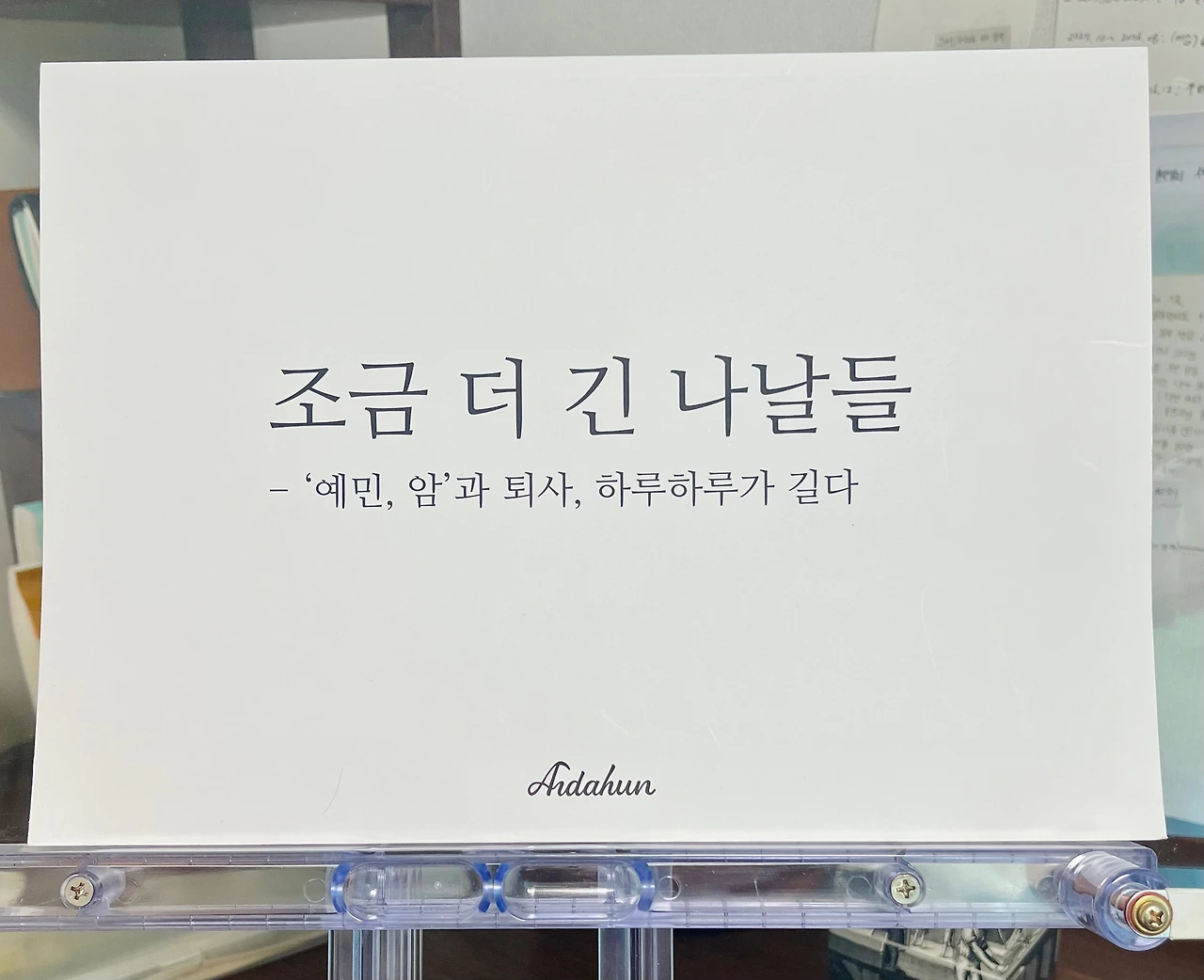 조금 더 긴 PPT는 나중에 지은 이름입니다. 별다른 의미가 있는 건 아니구요, 원고 제목을 '조금 더 긴 나날들'이라고 지어서 애칭을 짓듯 정해 본 것이죠. 완성한 뒤에는 컬러 무선 제본으로 주문했습니다.