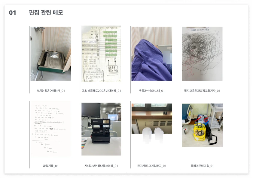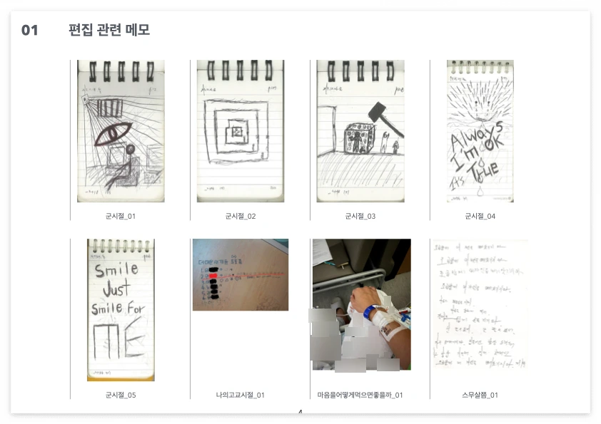 본문에 들어가는 사진만 따로 모았습니다. 사진과 파일 명만 적었습니다. 본문에도 마찬가지로 '군시절_01'과 같이 적어 뒀습니다.