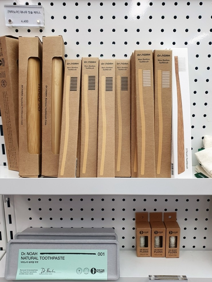 닥터노아 브랜드의 대나무 칫솔입니다. 고체 치약으로도 유명한 듯합니다.