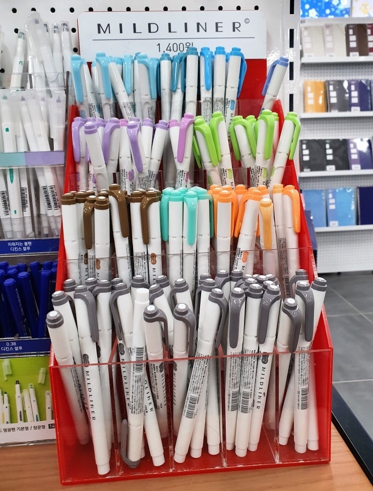 마일드라이너 형광펜입니다. 책에 쓰는 형광펜은 이 제품만 씁니다.