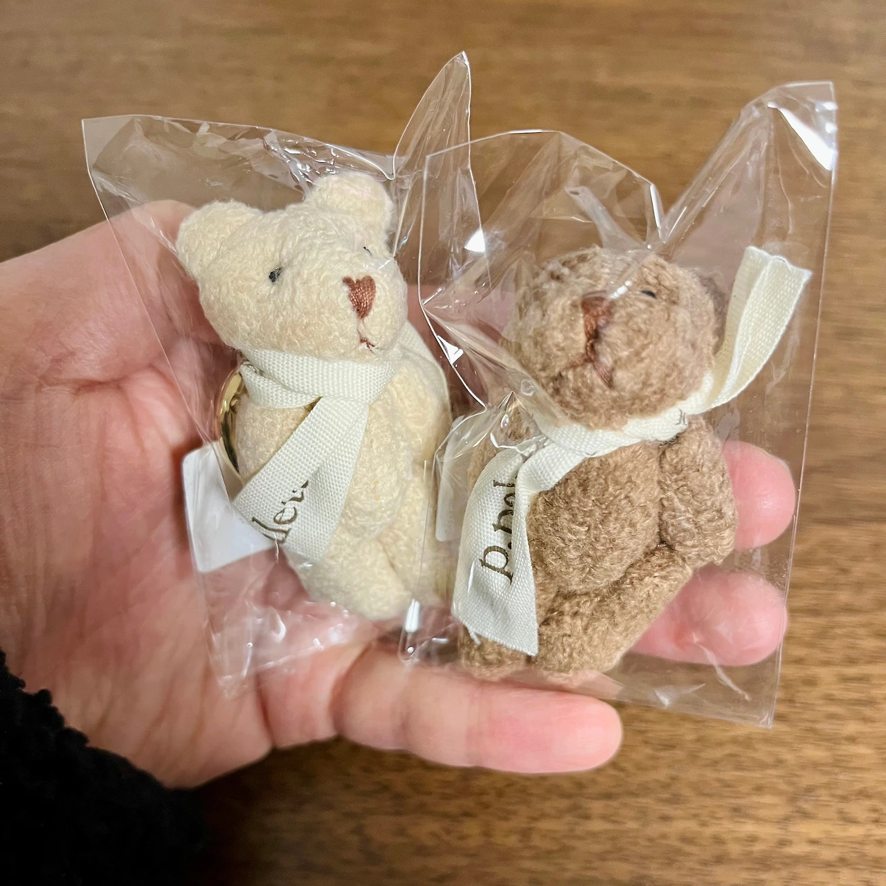 '미니 곰돌이 키 링 베이지 & 브라운'입니다. 예뻐서 사긴 했지만 저한테는 어울리지 않는 듯합니다. 다른 사람에게 선물할 일을 염두에 두고 샀습니다.