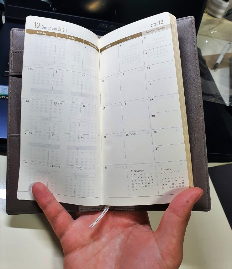 다이어리는 별생각 없다가 가죽 사양 표기 이슈를 계기로 바꾸게 됐습니다. 내년부터 트래블러스 노트에 먼슬리 내지를 끼워서 쓰려 합니다. 지퍼 케이스도 함께 끼워서 가방에 넣어 다닐 예정이에요.