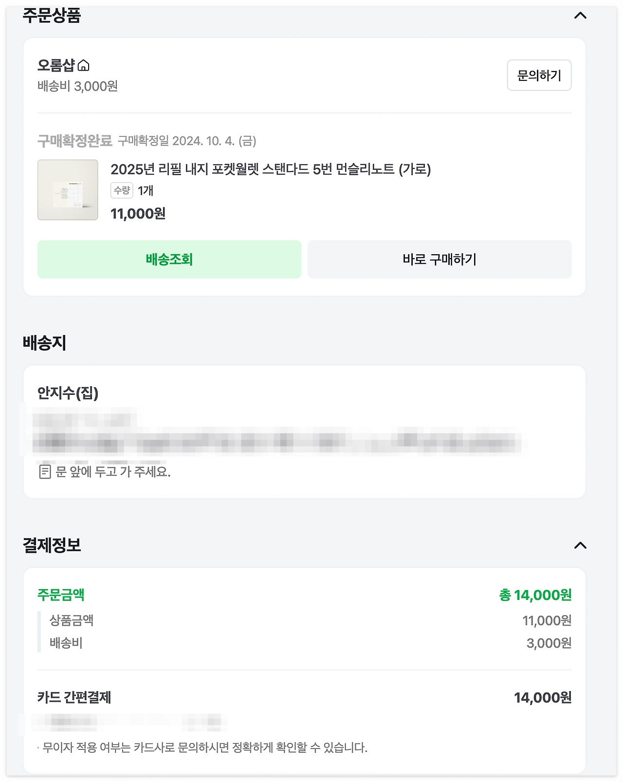 이천이십일 년부터 이천이십오 년까지 쓴 다이어리입니다. 정확하지는 않지만 내지와 각인까지 다해서 66,400원 들었던 것 같습니다. '다이어리에 이 돈을 쓴다고??'라는 생각에 고민을 많이 했지만.. 이보다 마음에 드는 물건을 찾을 수 없었죠. 이제는 가벼워지고 싶다는 마음이 다이어리를 고르는 데에도 적용됐습니다. '책처럼 두꺼운 건 싫고 무식하게 큰 걸 살 바에는 안 쓰고 말아야지.' '다 필요 없고 달력과 유선 노트만 있으면 좋겠다.' '가로는 짧고 세로는 긴 게 나으려나. 와 같은 기준들을 바탕으로 골랐습니다. 해가 넘어가면 내지만 갈아끼우면 되는 다이어리입니다.