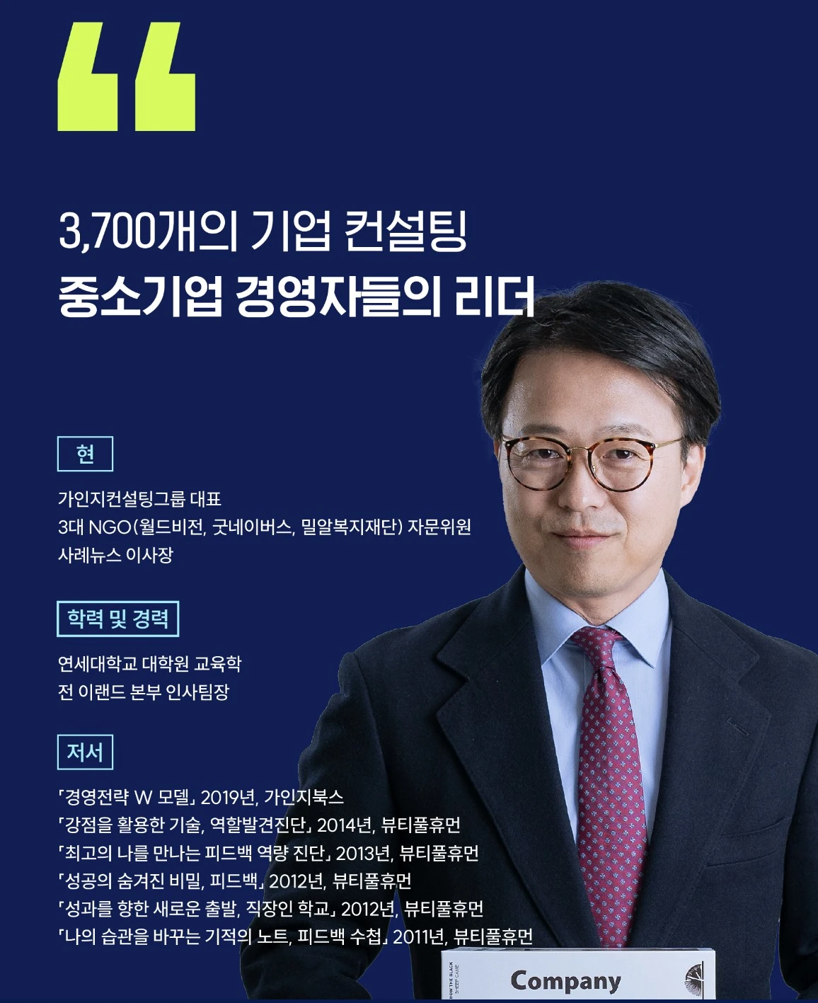 가인지 캠퍼스는 '비즈니스는 사랑이다'는 비전을 가지고 사업을 전개해 나가는 컨설팅 그룹입니다. 서로 물고 뜯고 돈만 보며 싸우는 이 전쟁통에서 '사랑'이란 단어가 과연 허용이 될까요? 저는 어려서부터 아버지가 사업을 운영하는 걸 보면서 자랐습니다. 지금은 가업승계를 할지 새로운 사업을 전개하여 나갈지 고민 중에 있습니다. 어느 날 한 경쟁업체가 공개입찰에서 말도 안 되는 금액을 작성했죠. 그것을 납품할 능력도 없는데 말입니다.
