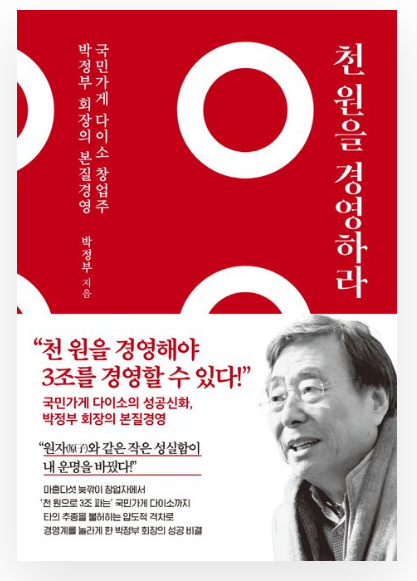 다이소 성공의 핵심은 '천 원'이라는 작은 가치를 끝까지 지킨 데에 있다고 생각합니다. 작은 원칙을 지키는 성실함이 굉장히 중요하지 않을까 하는 생각이 드네요. 실패가 두려워 아무것도 시작하지 못했던 지난날을 반성합니다. 박 회장은 건설 사업실패와 초기 창업 좌절이 있었는데, 본질에 집중하고 전략을 다듬었다고 합니다. 성공하는 대부분 사람이 '메모'하는 습관이 있는 걸로 아는데, 이런 경험은 정말 본받을만하네요.